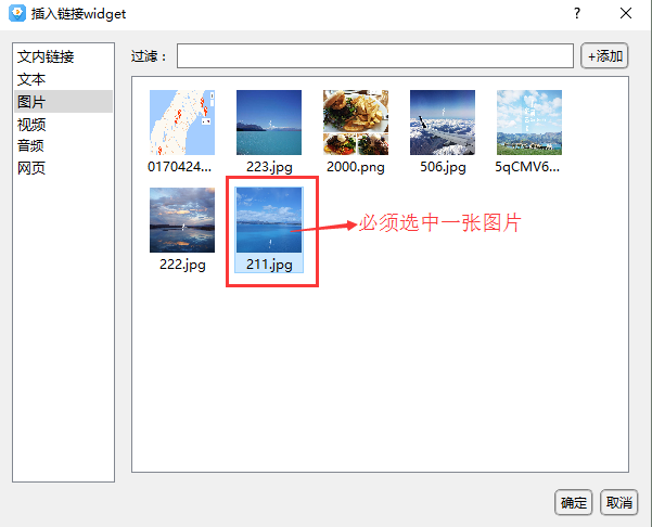 答:通常在鏈接控件的編輯界面,需要在資源庫中選中一個(gè)資源文件后,點(diǎn)擊添加才可以。用添加圖片鏈接舉例說明:如下圖,在鏈接widget界面插入圖片時(shí),必須選擇圖片,否則會(huì)操作失敗。